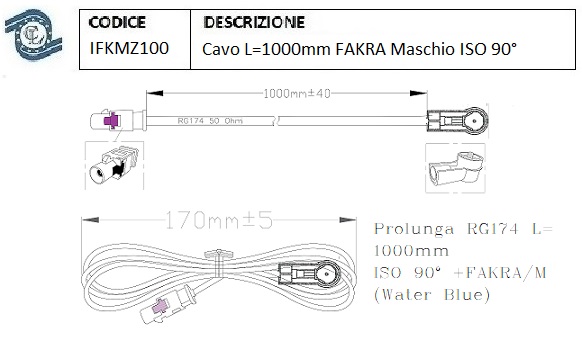 IFKMZ1000 Cavo L=1000mm FAKRA Maschio ISO 90°